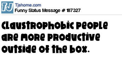 - # 156469 People who know me well know that I like to think outside the box. Mostly because I'm claustrophobic and can't concentrate when I am stuck inside a box and overwhelmed with panic.