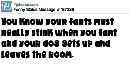 - # 193383 you know your farts really stink when the dog get up and leaves the room