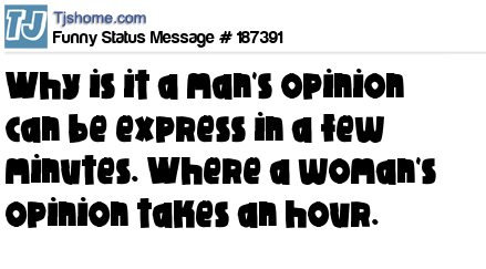 X is Why is it a man's opinion can be express in a few minutes. Where a woman's opinion takes an hour.