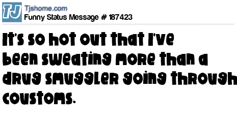 - # 187421 It's so hot that I've been sweating more than a drug smuggler going through coustoms.