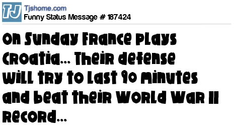 - # 207443 Today France's defense will try to last 90 minutes and beat their World War II record... not looking good.....