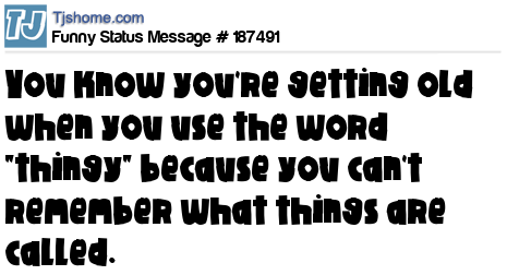 X is You know you're getting old when you use the word "thingy" because you can't remember what things are called.