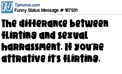 - # 27038 Rule of thumb when hitting on co-workers... if you're cute, it's flirting. If you're not... it's sexual harrassment.