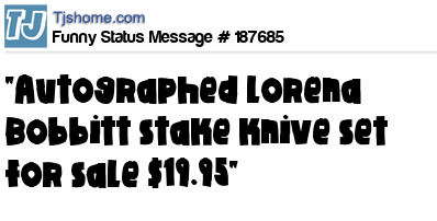X is "Autographed Lorena Bobbitt stake knive set for sale $19.95"
