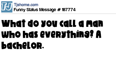 - # 198529 What do you call a man who has everything?...... A bachelor.