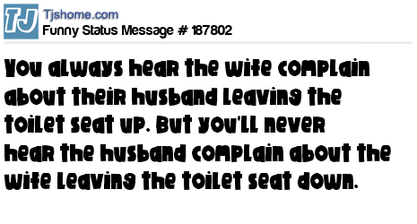 X is You always hear the wife complain about their husband leaving the toilet seat up. But you'll never hear the husband complain about the wife leaving the toilet seat down.
