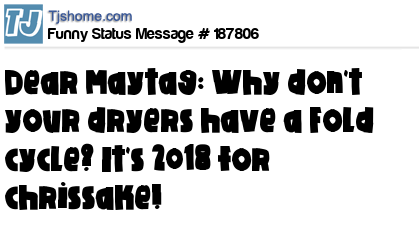 - # 181098 Dear Maytag: Why don't your clothes dryers have a "Fold" cycle? It's 2017 for Chrissake. -Me