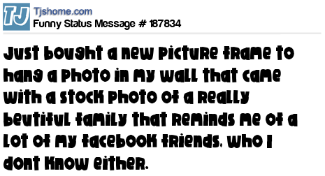 X is Just bought a new picture frame to hang a photo in my wall that came with a stock photo of a really beutiful family that reminds me of a lot of my facebook friends, who I dont know either.