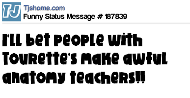X is I'll bet people with Tourette's make awful anatomy teachers!!