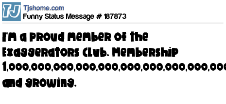 X says I'm a proud member of the Exaggerators Club. Membership 1,000,000,000,000,000,000,000,000,000,000,000 and growing.