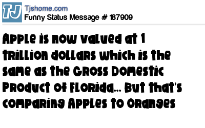 X says Apple is now valued at 1 trillion dollars which is the same as the Gross Domestic Product of Florida... But that's comparing Apples to Oranges