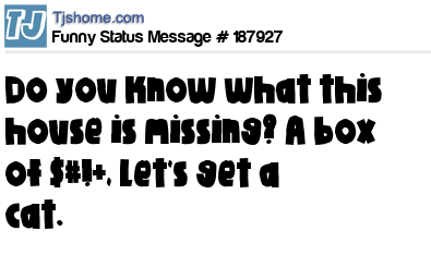 X says Do you know what this house is missing? A box of $#!+, Let's get a cat.