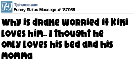 X says Why is drake worried if Kiki loves him.. I thought he only loves his bed and his momma