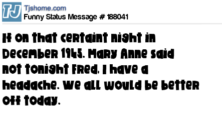 X is If on that certaint night in December 1945. Mary Anne said not tonight Fred, I have a headache. We all would be better off today.
