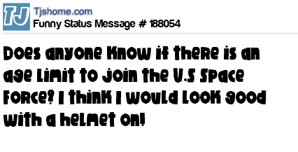 X says Does anyone know if there is an age limit to join the U.S Space Force? I think I would look good with a helmet on!