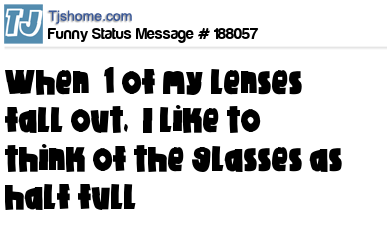 X says when 1 of my lenses fall out, I like to think of the glasses as half full