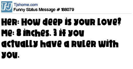 X says Her: How deep is your love? Me: 8 inches. 3 if you actually have a ruler with you.
