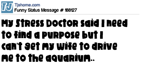 X is My Stress Doctor said I need to find a purpose but I can't get my wife to drive me to the aquarium..