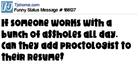 X is If someone works with a bunch of a$$holes all day. Can they add proctologist to their resume?