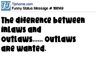 - # 70021 asks..what's the difference between in-laws and outlaws? Outlaws are wanted.