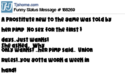 She asked.. “Why only wanks?”..her pimp said.. “Union rules!..you gotta work a week in hand!”