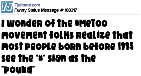 X says I wonder of the #MeToo movement folks realize that most people born before 1995 see the "#" sign as the "pound"