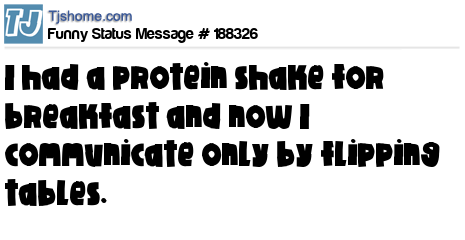 X says I had a protein shake for breakfast and now I communicate only by flipping tables.