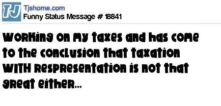 X is working on my taxes and has come to the conclusion that taxation WITH respresentation is not that great either...