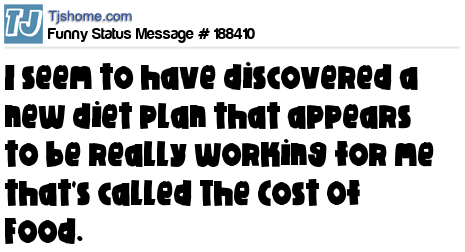 - # 200486 So I've been on a new diet I really seem to be working for me that's called "The cost of food"