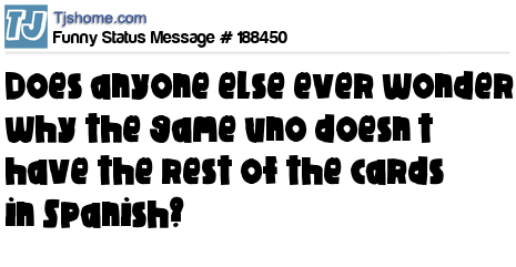 X says Does anyone else ever wonder why the game uno doesn’t have the rest of the cards in Spanish?