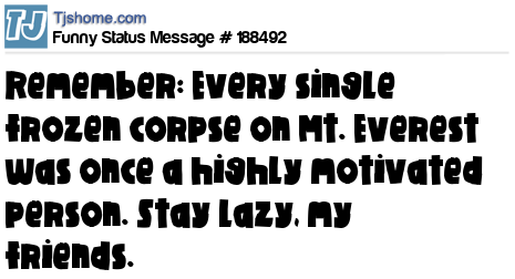 X says Remember: Every single frozen corpse on Mt. Everest was once a highly motivated person. Stay lazy, my friends.
