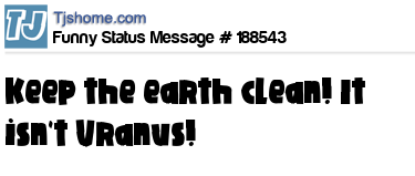 - # 3704 thinks we should keep the Earth clean. It's not Uranus.