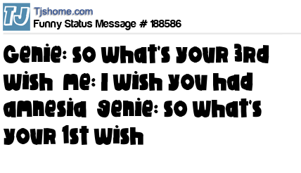 X says genie: so what's your 3rd wish me: I wish you had amnesia genie: so what's your 1st wish