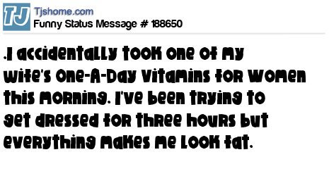 X says .I accidentally took one of my wife's One-A-Day Vitamins for Women this morning. I've been trying to get dressed for three hours but everything makes me look fat.
