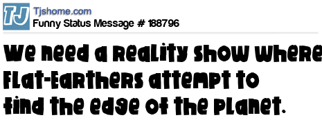 - # 209217 There should be a reality show where flat-earthers search for the edge of the world.
