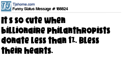 X says It’s so cute when billionaire philanthropists donate less than 1%. Bless their hearts.