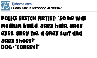 - # 195183 POLICE SKETCH ARTIST: So he had grey hair, medium build, grey eyes, no glasses, a grey suit and grey shoes? DOG: Correct