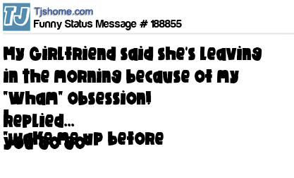 X is My Girlfriend said she's leaving in the morning because of my "Wham" obsession!