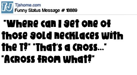 X "Where can I get one of those gold necklaces with the T?" "That's a Cross..." "Across from what?"