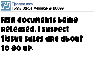 X says FISA documents being released. I suspect tissue sales are about to go up.