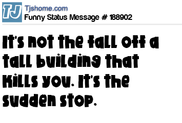 - # 121563 It's not the fall that kills you; it's the sudden stop at the end.