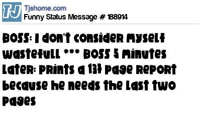 X BOSS: I don't consider myself wastefull *** BOSS 5 minutes later: prints a 137 page report because he needs the last two pages