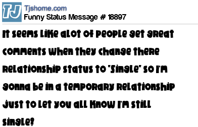 X is it seems like alot of people get great comments when they change there relationship status to "Single" so I'm gonna be in a temporary relationship just to let you all know I'm still single?
