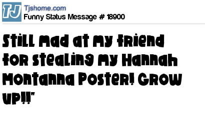 X is still mad at my friend for stealing my Hannah Montanna Poster! Grow up!!"