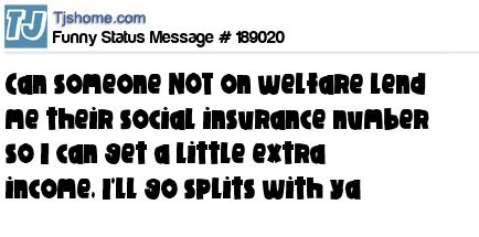X says Can someone NOT on welfare lend me their social insurance number so I can get a little extra income, I'll go splits with ya