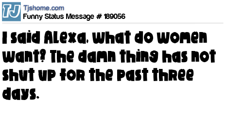 X is I said Alexa, what do women want? The damn thing has not shut up for the past three days.