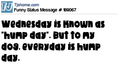 X is Wednesday is known as "hump day". But to my dog, everyday is hump day.