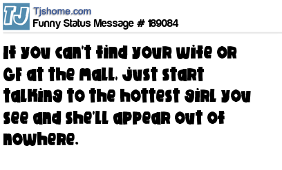 X If you can't find your wife or GF at the mall, just start talking to the hottest girl you see and she'll appear out of nowhere.