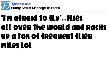 X says "I'm afraid to fly"...flies all over the world and racks up a ton of frequent flier miles lol