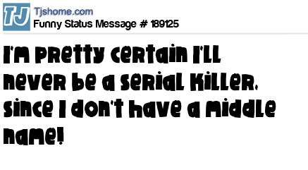 X is I'm pretty certain I'll never be a serial killer, since I don't have a middle name!